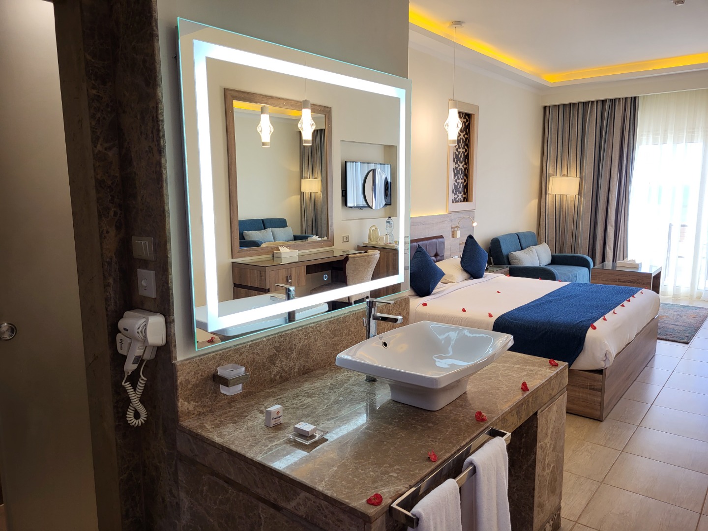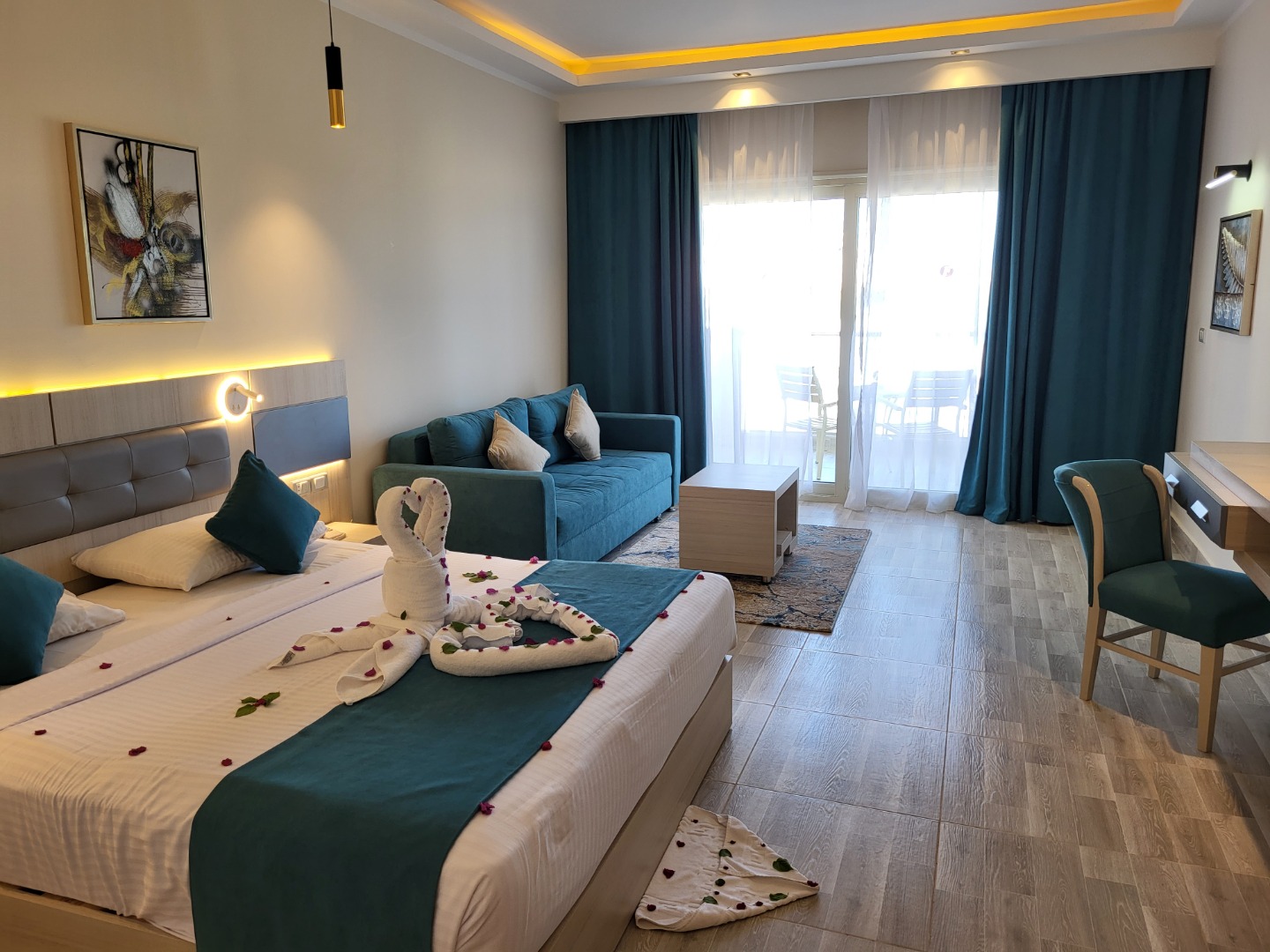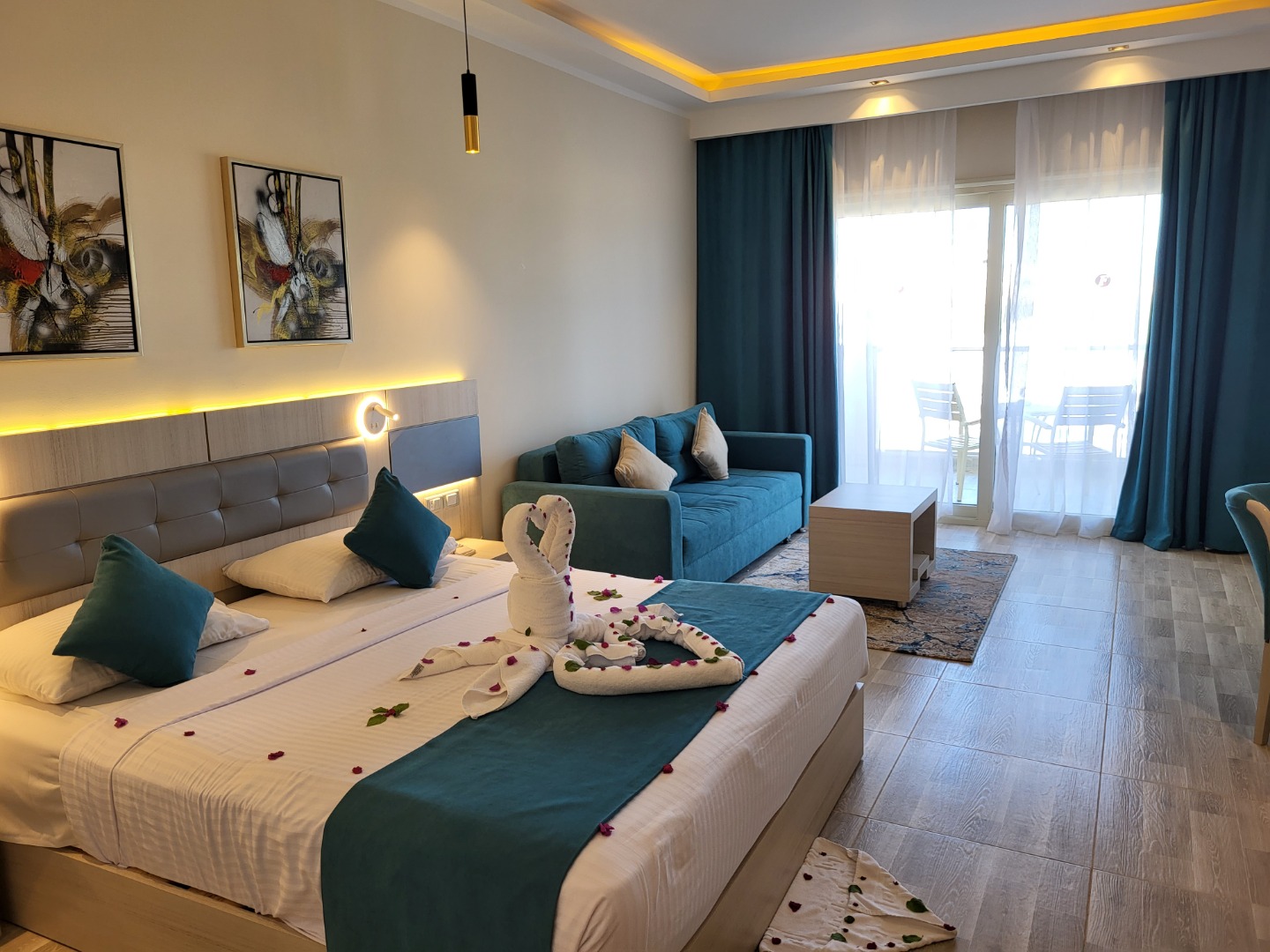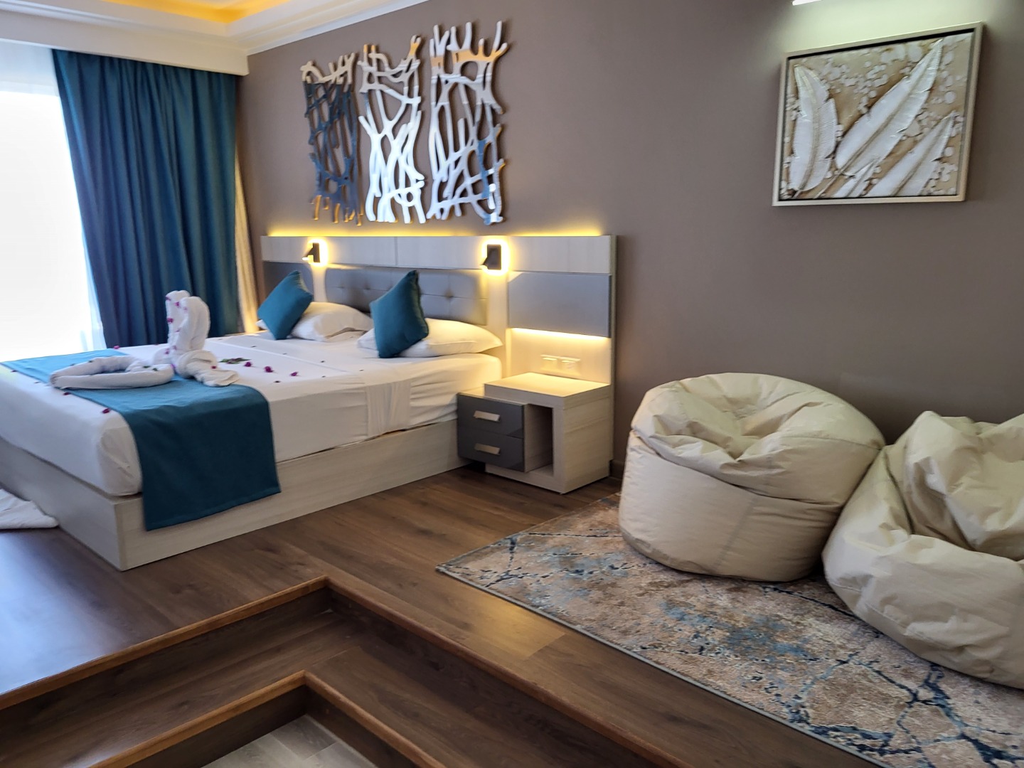 Odkrycie roku, bardzo dobrej klasy hotel. Najlepsze jedzenie ze wszystkich hoteli, w których jadłam, doprawione, duży wybór, dobrej jakości. Pokoje standard (pomarańczowe) są jeszcze przed remontem, ale bardzo dobrze utrzymane i czyściutkie, pokoje superior i delux nowiutkie wszystko. W hotelu jest strefa "adult only 16+" z pokojami delux, bardzo luksusowo, osobne baseny i restauracje, a dodatkowo możliwość korzystania z całego resortu, ta część ma też własny kawałek plaży. Plaża piaszczysta z pomostem do rafy. Hotel ma też bardzo bogaty program animacji, od porannej jogi, aż do codziennej muzyki na żywo wieczorem, 1x w tygodniu jest piana party w cenie. W 2023 roku będzie otwarta nowa część Fantazia Palace 5* (mały budynek za którym widać dźwig) osobny basen i restauracja, pokoje bardzo ładne. Teren hotelu jest naprawdę duży, ale ładnie zagospodarowany, jest wiele miejsca na leżaki i sporo zieleni.