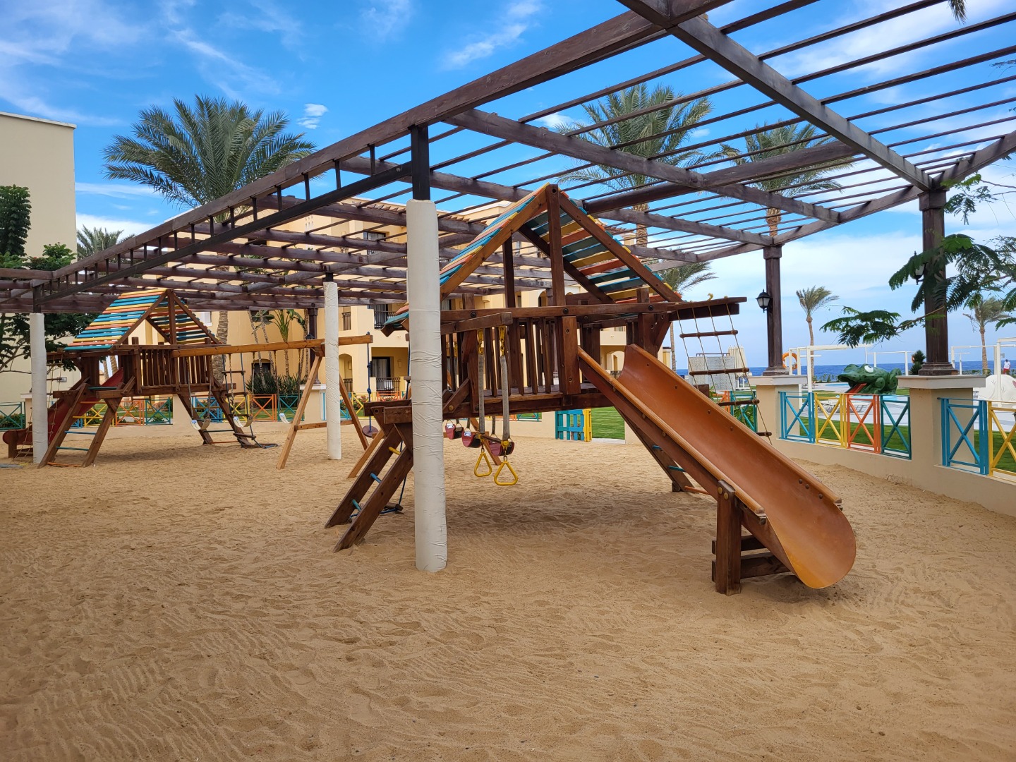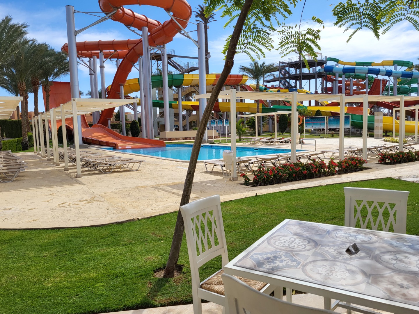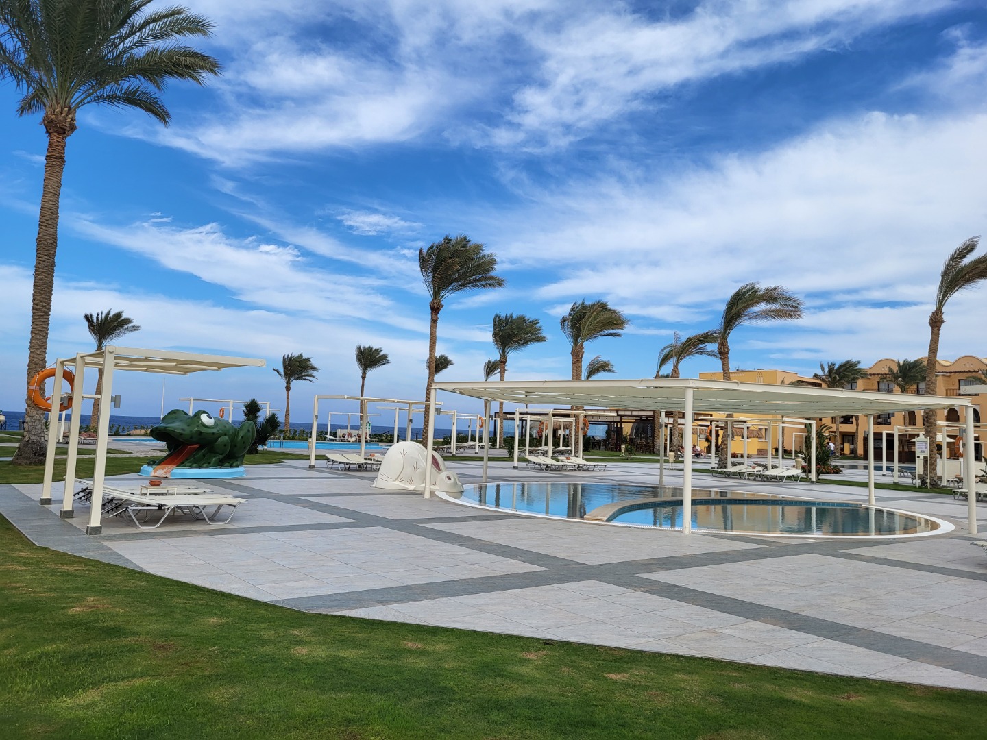 Bezpośrednio przy plaży, trochę dalej od bezpłatnego aquaparku, fajny basen relaksacyjny z widokiem na morze. Pokoje rodzinne delux 2-pomieszczeniowe, natomiast rodzinne standard i superior mają 1 pomieszczenie z zasłonką, jak na zdjęciach. Reszta atrakcje, animacje jak powyżej. Wifi free.