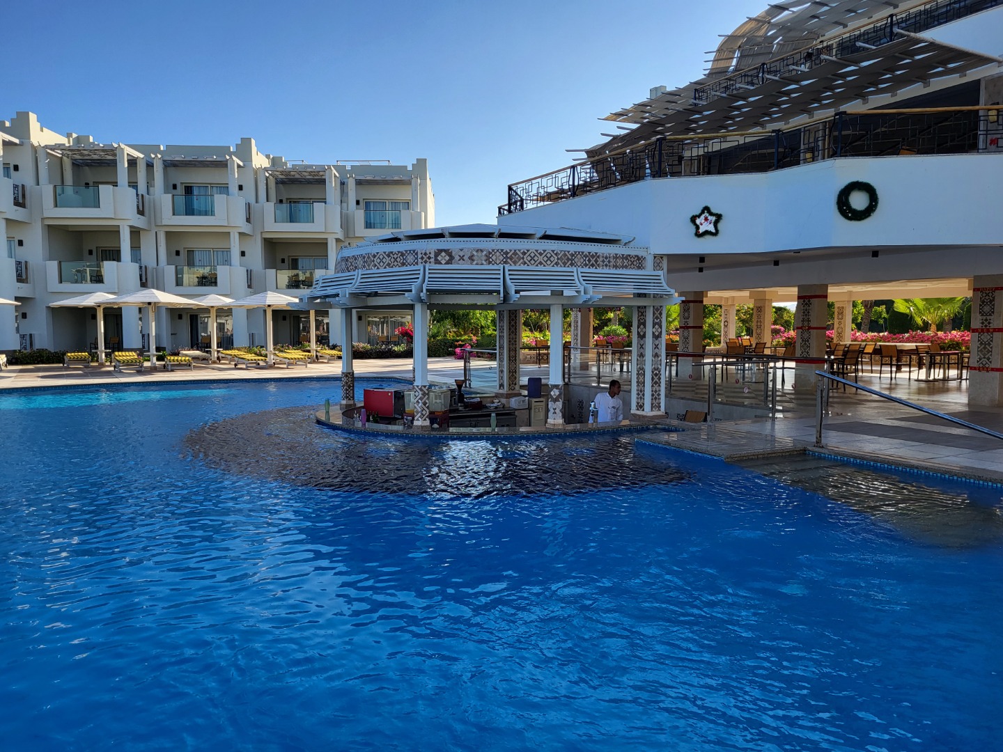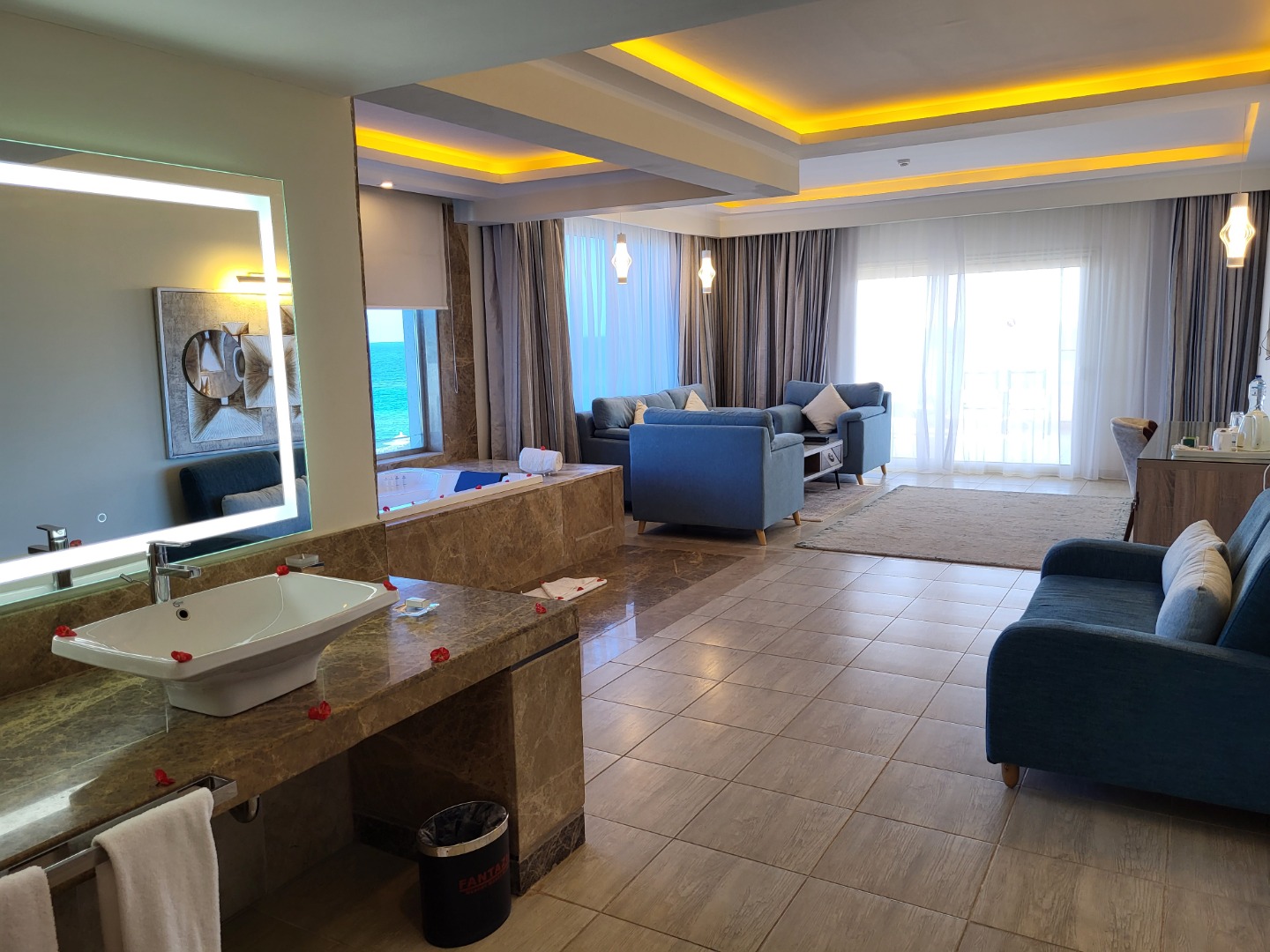 Odkrycie roku, bardzo dobrej klasy hotel. Najlepsze jedzenie ze wszystkich hoteli, w których jadłam, doprawione, duży wybór, dobrej jakości. Pokoje standard (pomarańczowe) są jeszcze przed remontem, ale bardzo dobrze utrzymane i czyściutkie, pokoje superior i delux nowiutkie wszystko. W hotelu jest strefa "adult only 16+" z pokojami delux, bardzo luksusowo, osobne baseny i restauracje, a dodatkowo możliwość korzystania z całego resortu, ta część ma też własny kawałek plaży. Plaża piaszczysta z pomostem do rafy. Hotel ma też bardzo bogaty program animacji, od porannej jogi, aż do codziennej muzyki na żywo wieczorem, 1x w tygodniu jest piana party w cenie. W 2023 roku będzie otwarta nowa część Fantazia Palace 5* (mały budynek za którym widać dźwig) osobny basen i restauracja, pokoje bardzo ładne. Teren hotelu jest naprawdę duży, ale ładnie zagospodarowany, jest wiele miejsca na leżaki i sporo zieleni.
